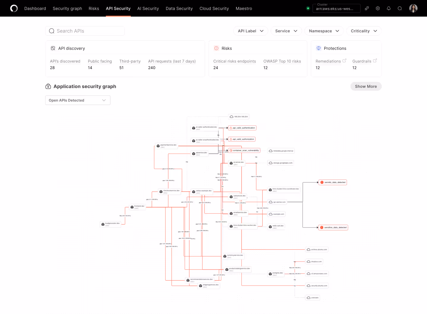 Get an instant view of your entire live API blueprint, across dev, staging and prod. With an intuitive graph interface, fly through risk, context, and threat models for public and internal API endpoints.